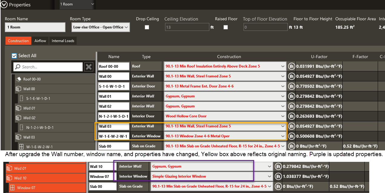 Here are the impacts to the naming conventions on the wall and window that were impacted by the adjoining room addition.