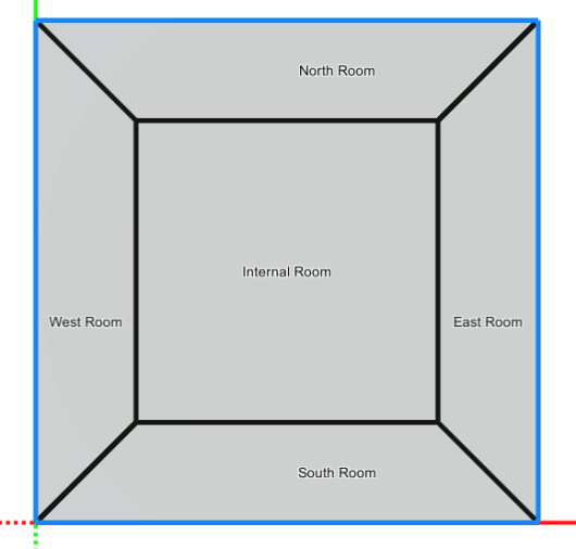 Internal Floor – This is calculated from the centerline of each wall. For example, if the interior space of a room is 10 ft x 10 ft and the wall thickness is 0.5 ft, the internal floor area is calculated as 10.5 ft x 10.5 ft = 110.25 ft2.