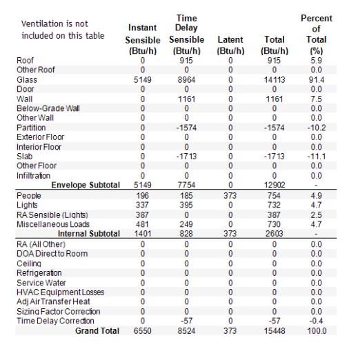Total: This is simply the sum of the instant sensible, time delay sensible, and latent loads.