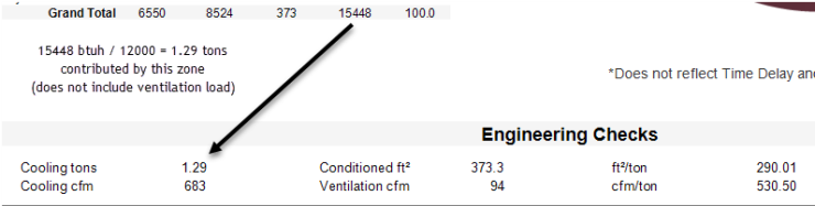 Cfm/ton = main fan / (Grand Total from Coil Peak [Btu/h] /12000 [Btuh/ton])