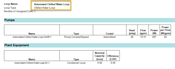 The plant sizing will appear in the System Component Summery Report and the Plant Summary report. The Pumps and Plant Equipment tables are on the System Component Summary report.