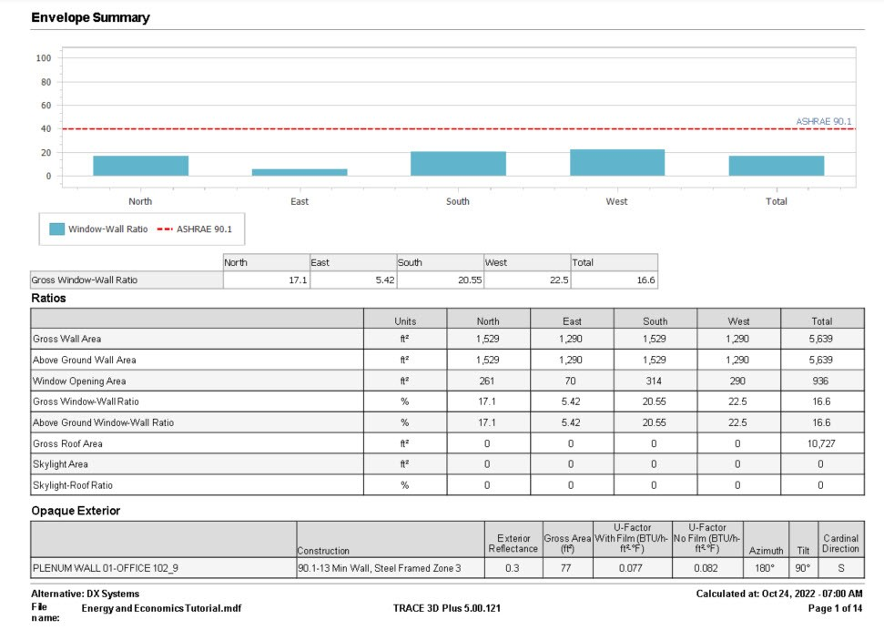 Btu/h per ft2 (or W/m2): This is a ratio of the total load and the area of the related surface. The surfaces used for each load component are listed in the table below. The area for each of these surfaces can be found in the Areas section of the report as well as the Related Area column of the Fan Peak section.