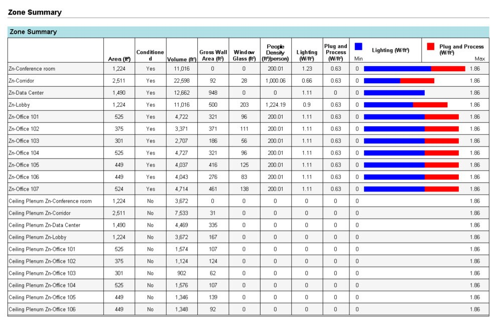 The Zone Summary report shows a table comparing the key zone parameters.